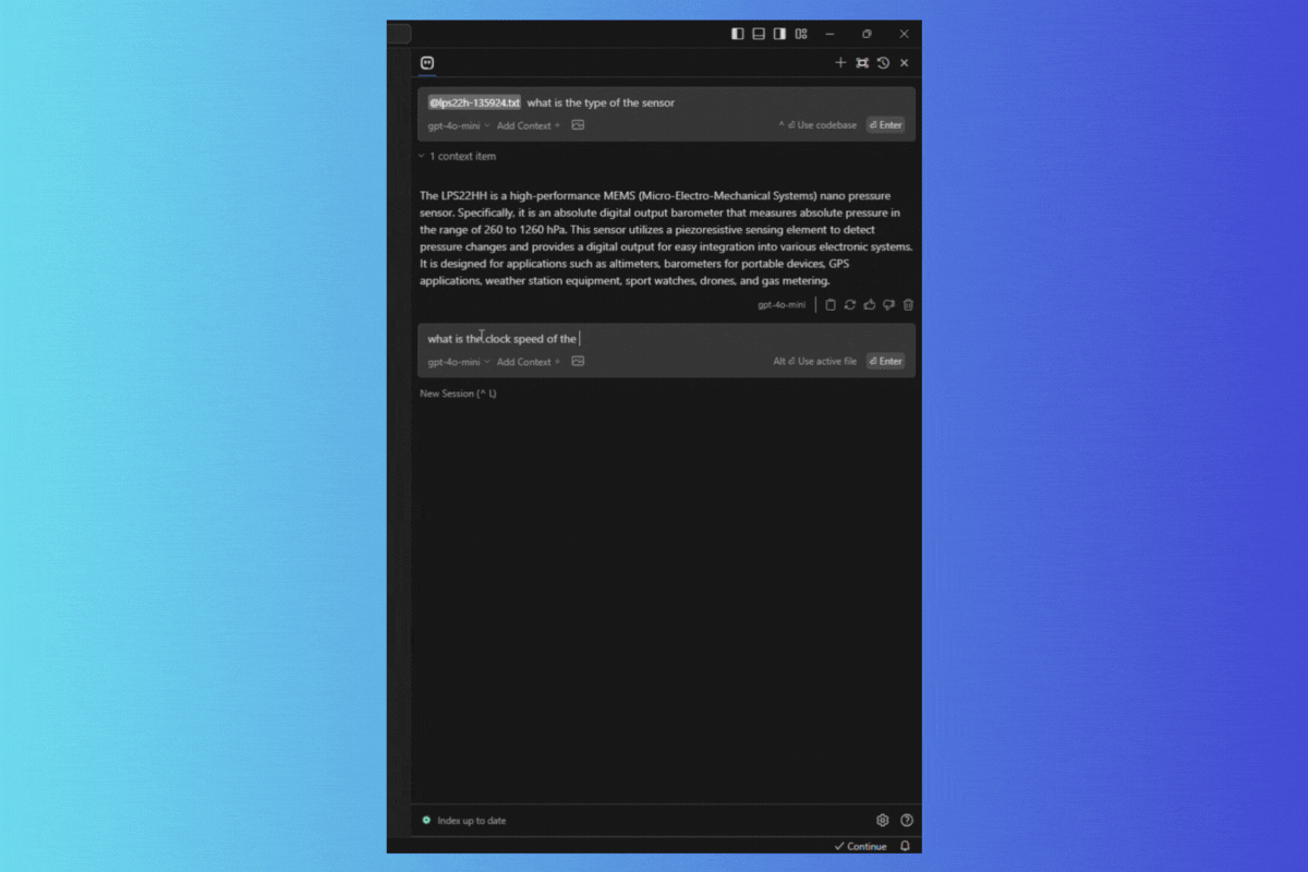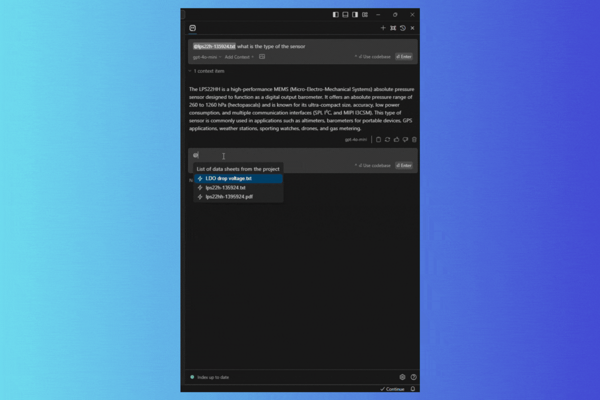 When programming, engineers must comb through complex datasheets to extract register settings, pin configurations, and timing requirements needed for testing. With the copilot, engineers can use natural language queries, and the AI will extract key specifications from the datasheet, such as ADC resolution or clock speed.