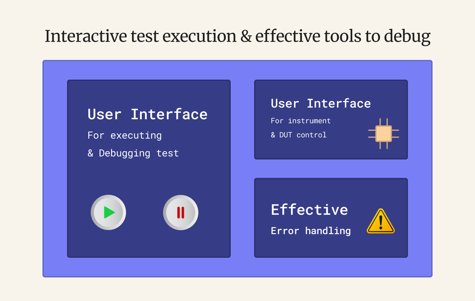 - Flexible Execution of Measurements: Engineers should be able to execute measurements interactively through user interfaces, allowing them to step into the code for debugging purposes. This capability is crucial for pinpointing the root cause of errors and refining the code during the testing phase.