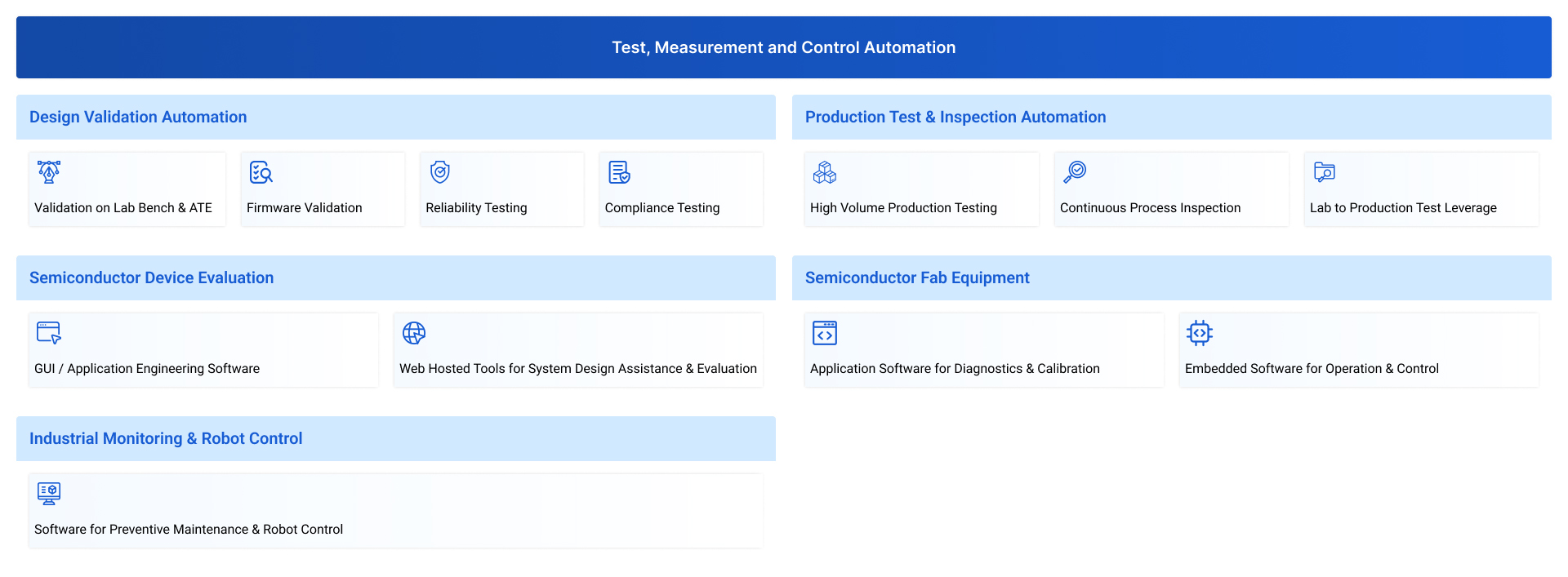 Soliton Technologies offers a series of services for automating test, measurement, and control systems across a wide range of industries. By leveraging modern software frameworks and architectures, we enable our customers to build scalable, flexible, and language-agnostic automation solutions that meet the demands of today’s complex test and control environments.